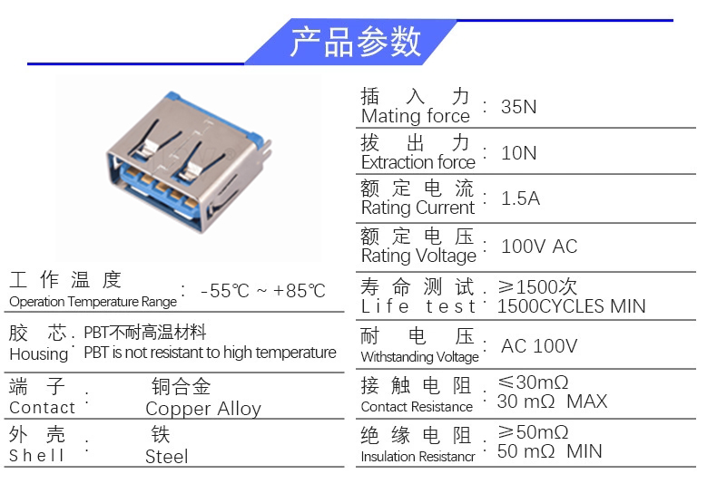 USB 3.0AF 立贴鱼叉脚(高度11.5)