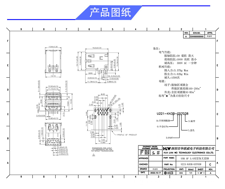 产品料号: U221-K43B-G57038