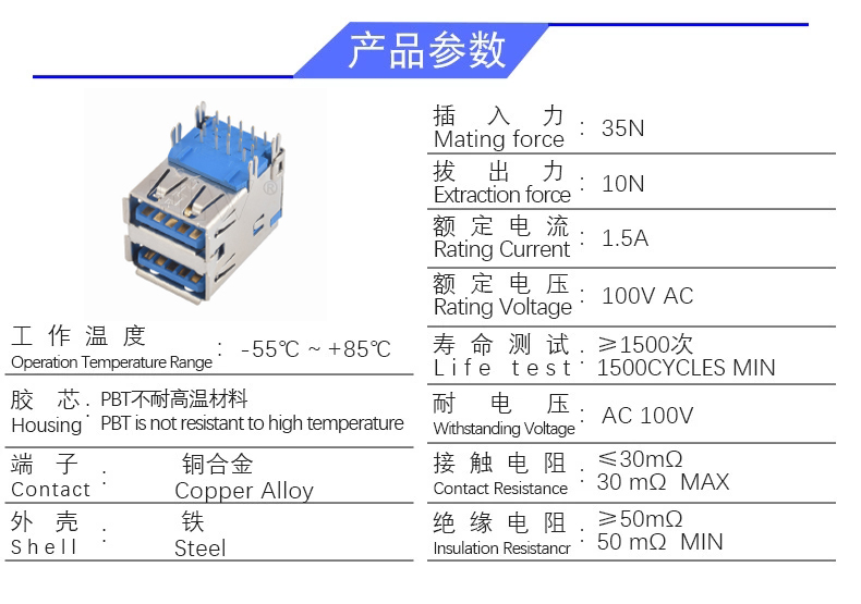 USB 3.0AF 90度双层短体(鱼叉直脚)