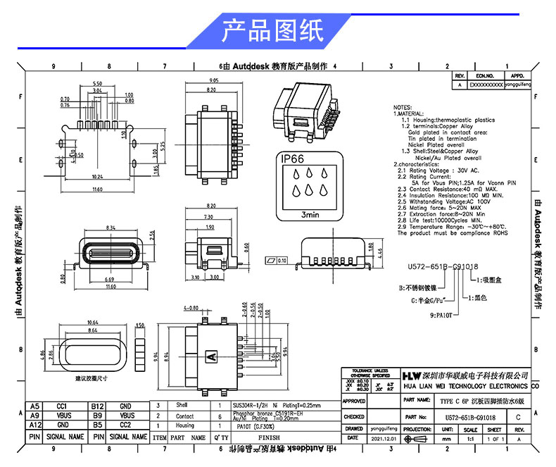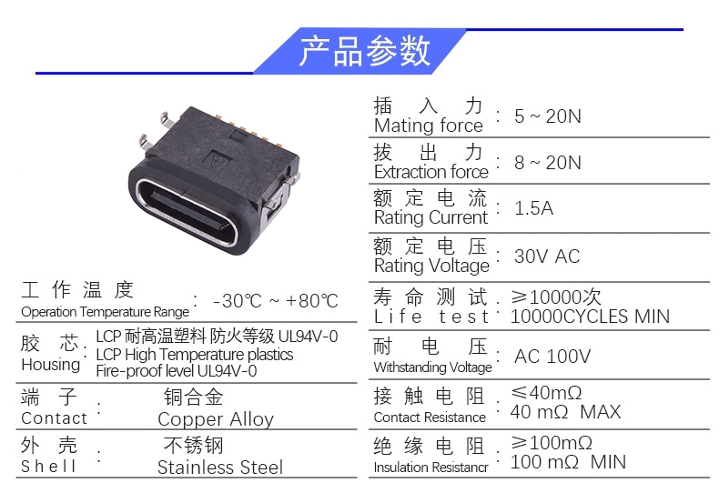 TYPE C 6P/F 沉板0.6四脚(防水6级)