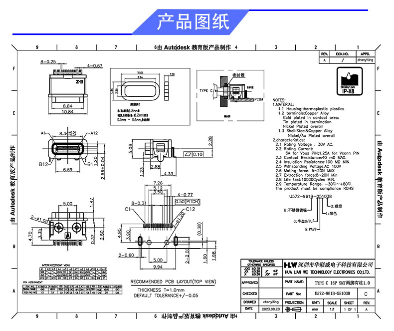 TYPE C 16P SMT 防水两脚(有柱1.0)