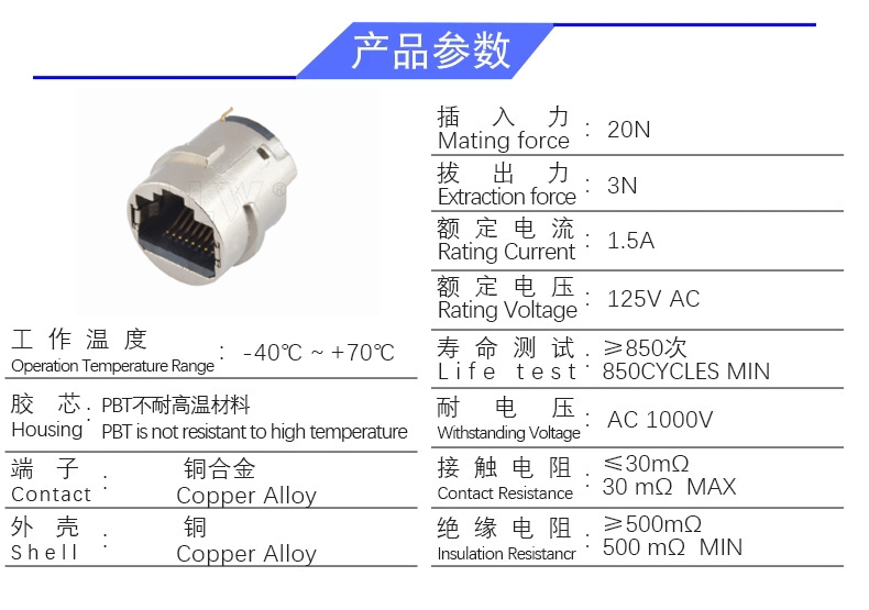 RJ45 8P8C 圆形防水母座(带屏蔽)